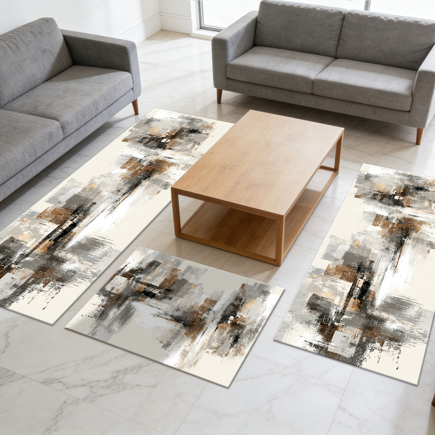 Three-piece kitchen rug set, non-slip and washable, abstract pattern kitchen hallway rug, soft and comfortable, suitable for sinks, floors, entrances, hallways and bathrooms.