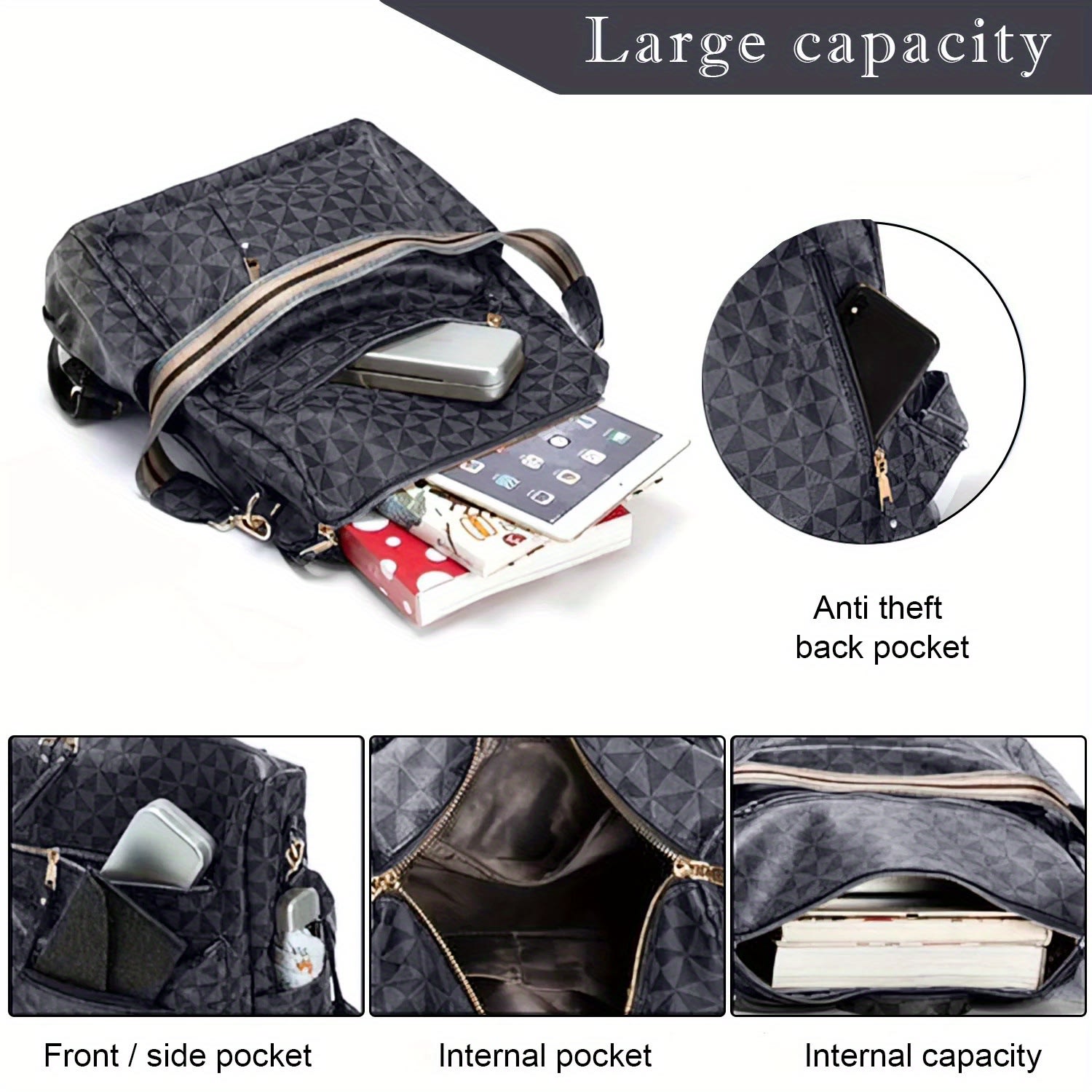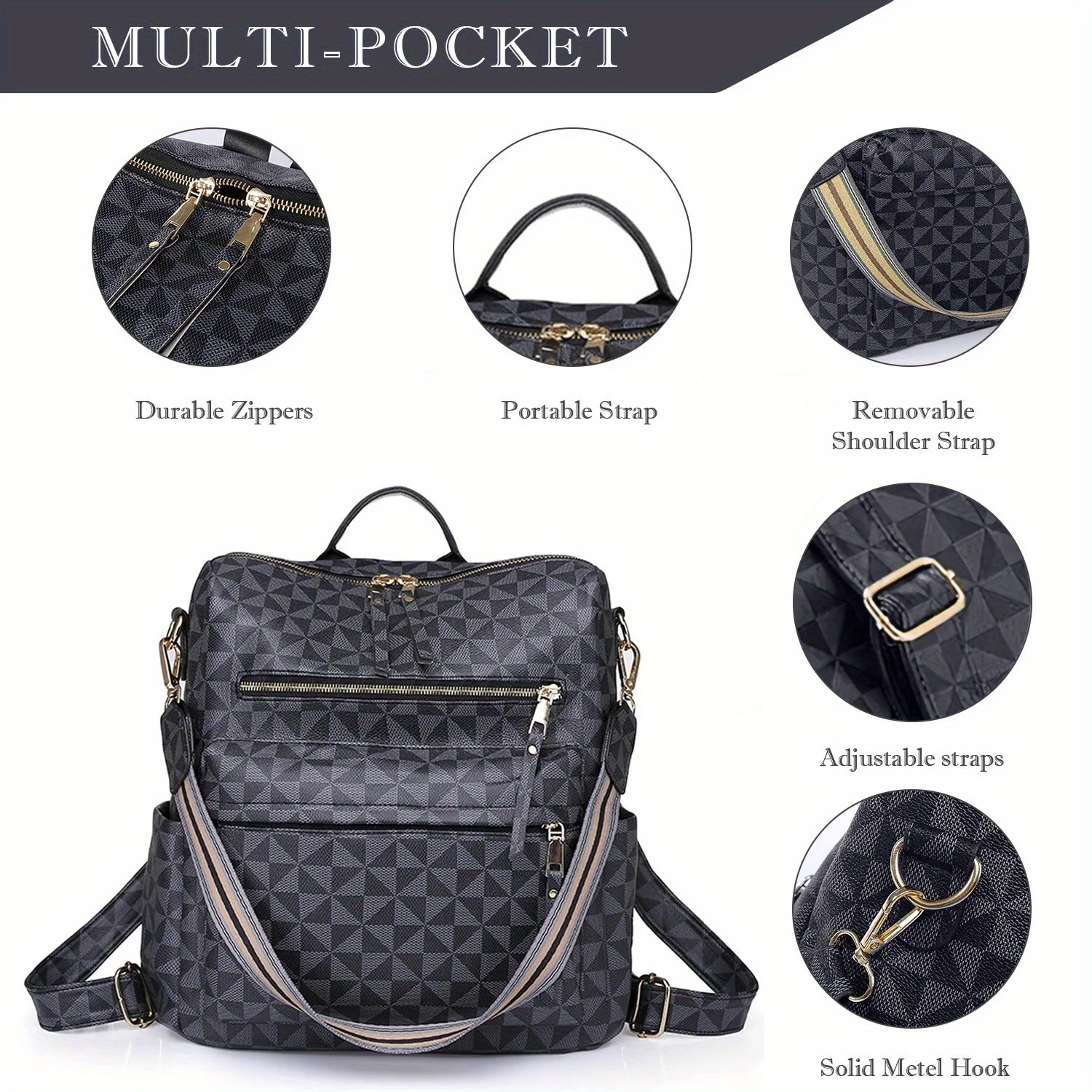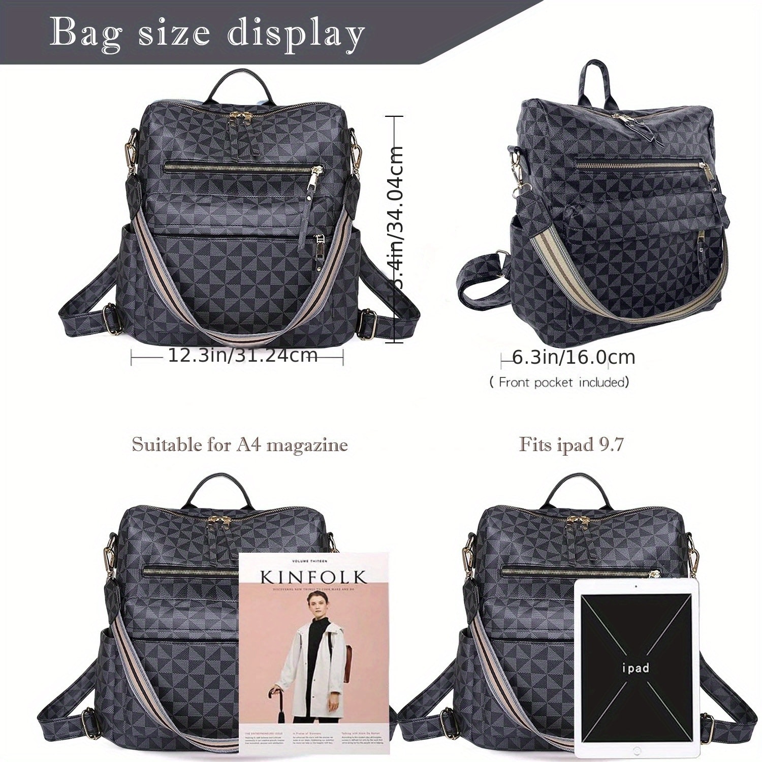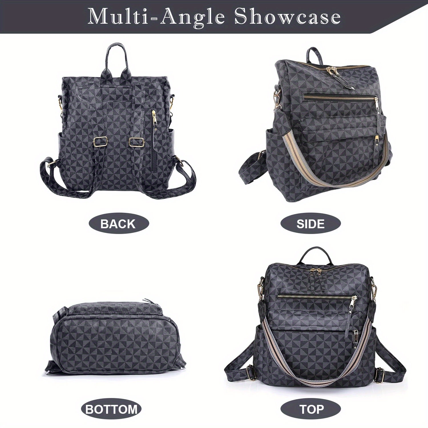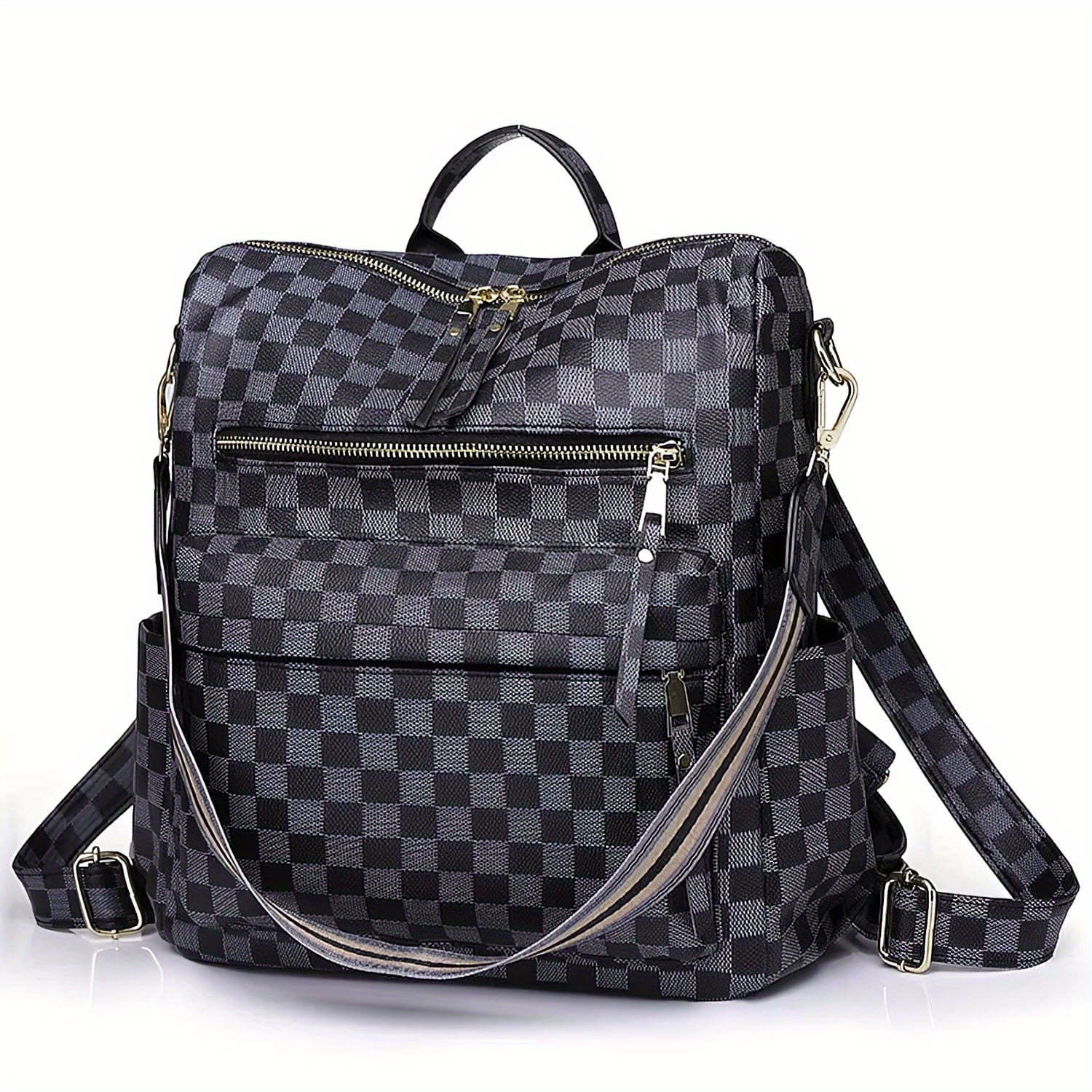 产品详情 这款女士时尚背包手袋集手袋与背包于一体,是两者完美结合的典范。我们的这款防水专用合成皮革肩包设计时尚,容量大,非常适合工作或旅行使用,能够轻松地从女士工作用的皮质手袋转变为忙碌女性的时尚旅行伴侣。 ● 材质:聚氨酯皮革 ● 颜色:黑色格子 ● 尺寸:13 英寸(宽)× 7 英寸(长)× 2.35 英寸(高);(长×宽×高)(由于人工测量会有 1-2 厘米的误差) ● 重量:1.87 磅 / 850 克 ● 特点:大容量、多功能、安全的后部拉链设计 ● 类型:背包和手提包 ● 开合方式:金属拉链 ● 包装内容:1 个女士背包/1 条彩色肩带 ✿ 多功能设计:这款女士皮质背包兼手提包适用于旅行、上学、工作或日常使用。它时尚美观、实用性强,还能与任何服装搭配。 ✿ 丰富存储空间:多个拉链口袋能将书籍、电子设备和化妆品等必需品整理得井井有条且安全存放,非常适合忙碌的女性出行使用。 ✿ 耐用且轻便:采用防刮PU皮革制成,这款背包既轻便又经久耐用,适合日常使用或户外活动。 ✿ 防盗且防水:主隔层具有防水功能,还具有防盗设计,可保护您的贵重物品免受恶劣环境和扒手的侵害。✿ 高品质制造:采用加固缝线和优质材料,这款背包经久耐用,适合长期使用。 Product Details This stylish women's backpack handbag combines the functions of a handbag and a backpack, representing a perfect blend of the two. Our waterproof synthetic leather shoulder bag is stylishly designed, has a large capacity, and is highly suitable for both work and travel. It can easily transform from a lady's leather handbag for work to a fashionable travel companion for busy women. ● Material: Polyurethane leather ● Color: Black check pattern ● Dimensions: 13 inches (width) × 7 inches (length) × 2.35 inches (height); (length × width × height) (Due to manual measurement, there may be an error of 1-2 centimeters) ● Weight: 1.87 pounds / 850 grams ● Features: Large capacity, multi-functional, safe rear zipper design ● Type: Backpack and handbag ● Opening method: Metal zipper ● Packaging contents: 1 lady's backpack / 1 colored shoulder strap ✿ Multi-functional design: This ladies' leather backpack and handbag is suitable for travel, school, work or daily use. It is stylish, practical and can be matched with any clothing. ✿ Abundant storage space: Multiple zipped pockets can neatly organize books, electronic devices and cosmetics, etc., and keep them safely. It is perfect for busy women for travel. ✿ Durable and lightweight: Made of scratch-resistant PU leather, this backpack is both lightweight and durable, suitable for daily use or outdoor activities. ✿ Anti-theft and waterproof: The main compartment has a waterproof function and also has an anti-theft design, protecting your valuable items from harsh environments and pickpockets. ✿ High-quality manufacturing: Using reinforced stitching and high-quality materials, this backpack is durable and suitable for long-term use.